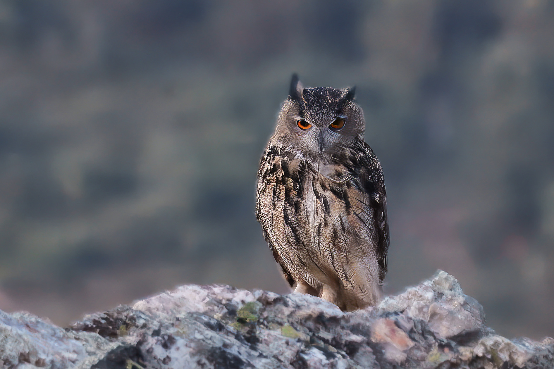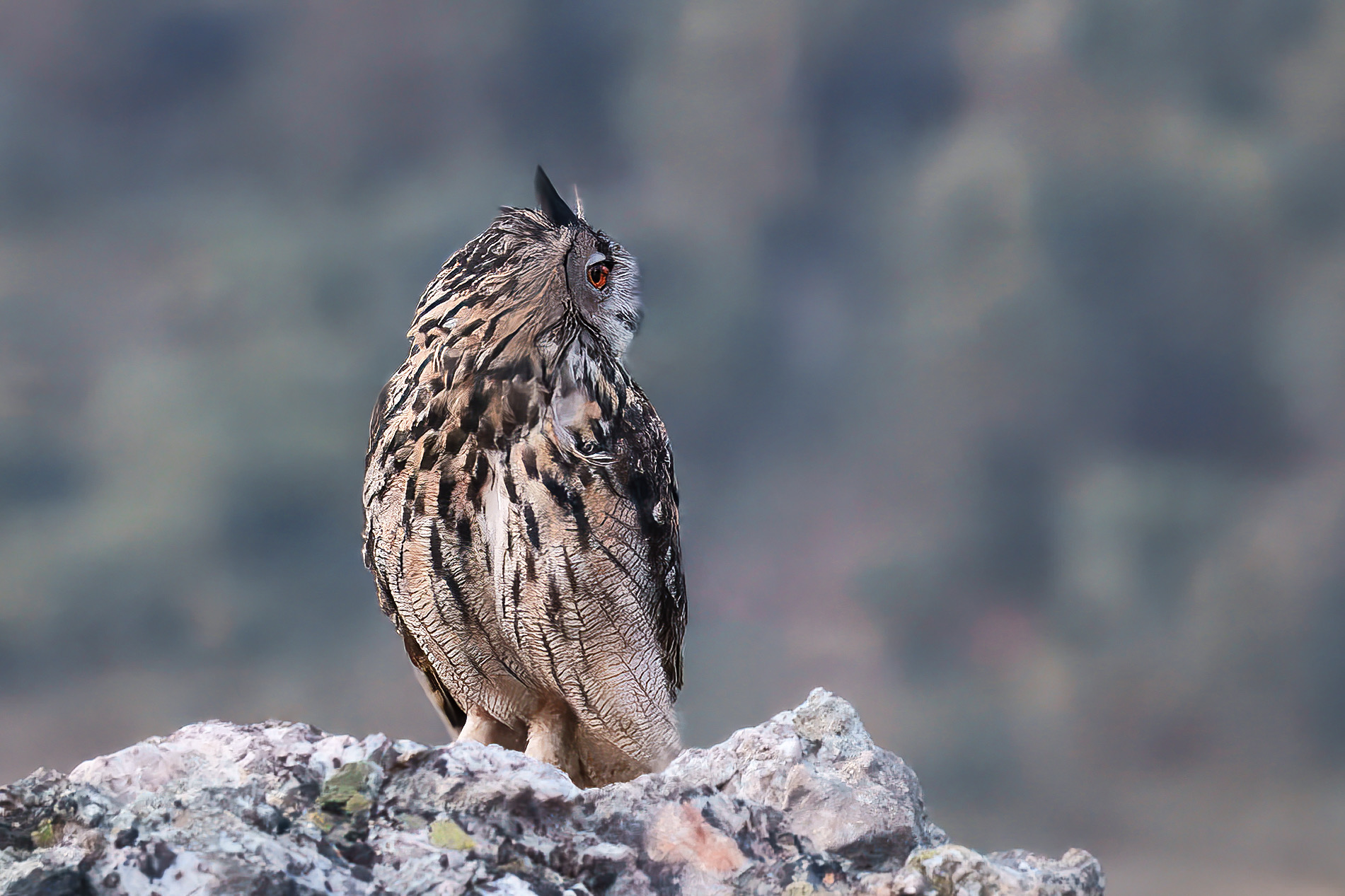 De hide ligt in een rotsachtig landschap in Extremadura, een regio die bekendstaat om haar grote roofvogels en rustige natuur. De omgeving sluit perfect aan bij het natuurlijke biotoop van de oehoe en zorgt voor een authentieke uitstraling in de beelden.