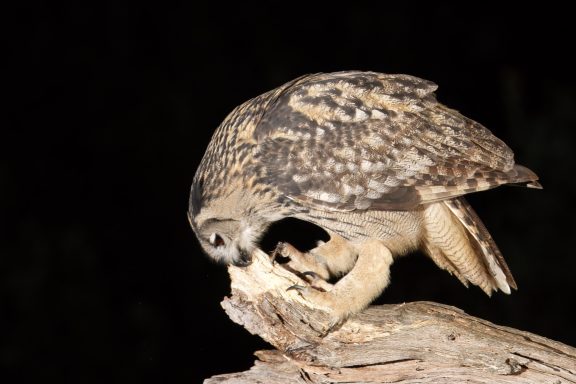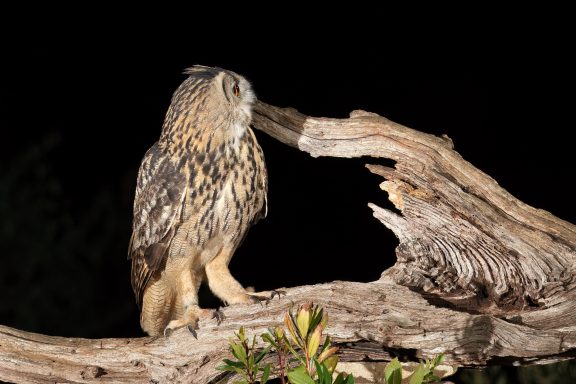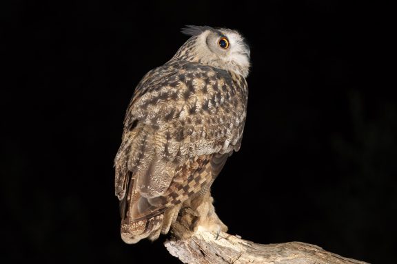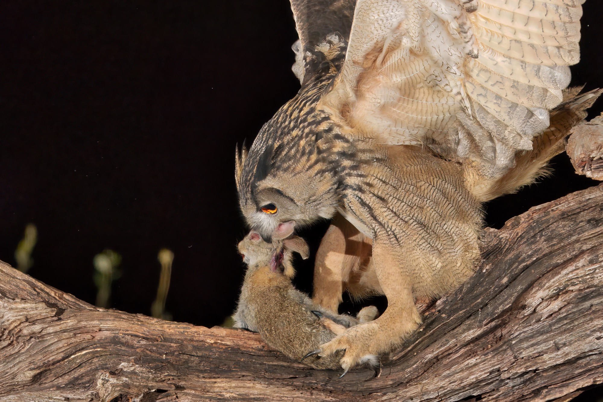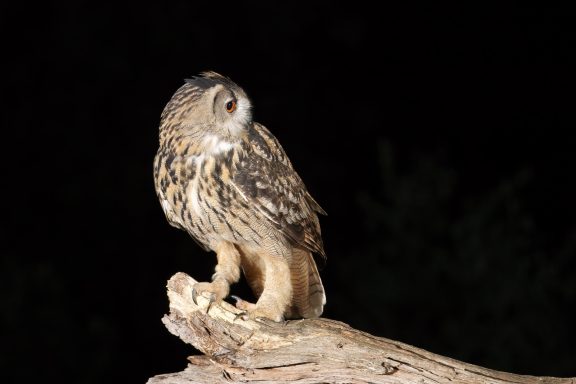 De oehoe maakt hier gebruik van rotsrichels en bosranden, wat zorgt voor intieme en sfeervolle beelden met een natuurlijke, groene achtergrond. De hide is gericht op rustige observatie en gecontroleerde fotografie, met mogelijkheden voor krachtige portretten, karakteristieke houdingen en expressieve kopdetails.