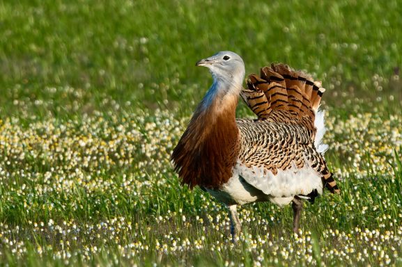 De grote trap is zonder twijfel de hoofdsoort van deze hide. Vooral in het voorjaar, tijdens de baltsperiode, biedt deze hut unieke kansen om het spectaculaire gedrag van de mannetjes vast te leggen. De imposante balts, waarbij de vogels veranderen in bijna witte ‘bollen’, is één van de meest bijzondere natuurspektakels van Europa.
