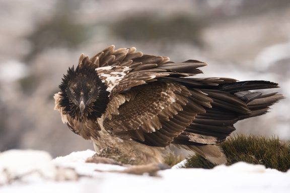 Het ruige landschap en de hoogte van de locatie geven de beelden een echt bergkarakter, waardoor deze hide bijzonder geschikt is voor dynamische foto’s van grote aaseters in hun natuurlijke omgeving.